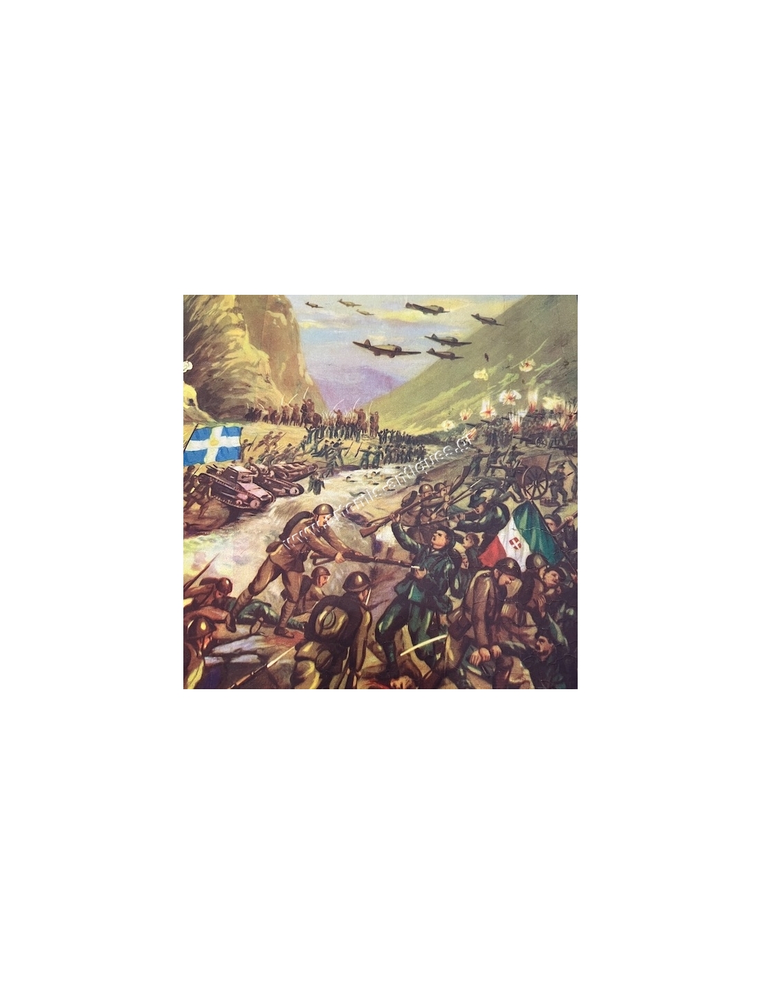 "Η Πανωλεθρία των Ιταλών εις τον Ποταμόν Καλαμάν" 1940 Χρωμολιθογραφία