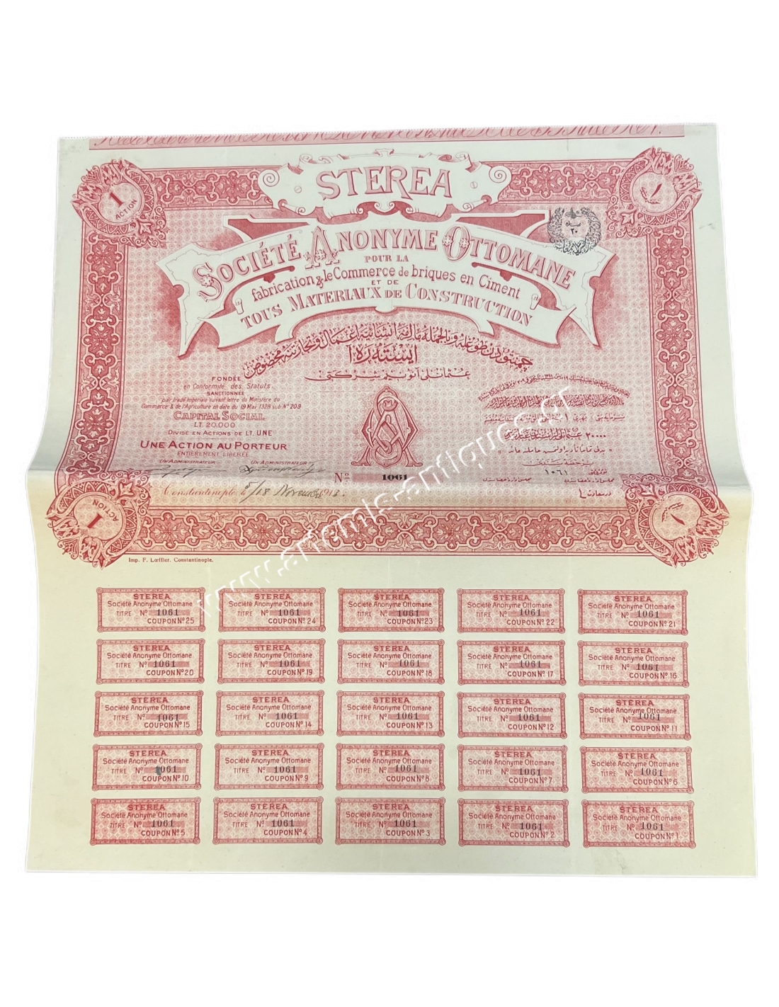 STEREA, Société Anonyme Ottomane, Τιτλος 1 Μετοχής 1913