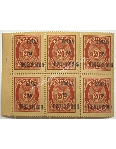 20 Lepta Cretan State Lux Stamps Hexad with Error