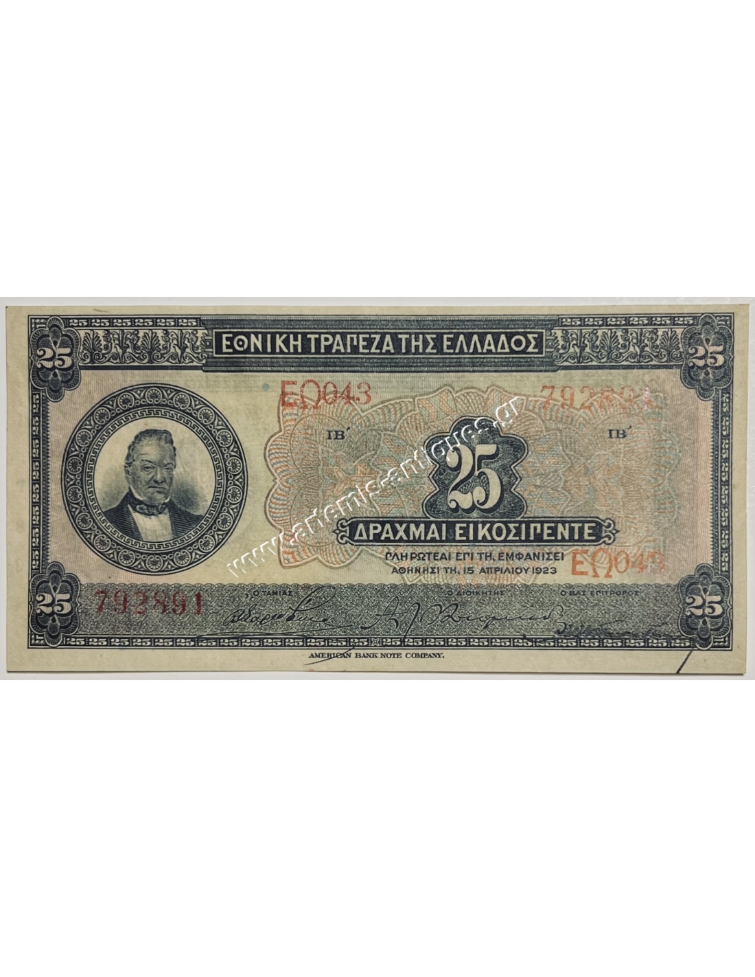 25 Drachmas 1923 UNC Printed Signature