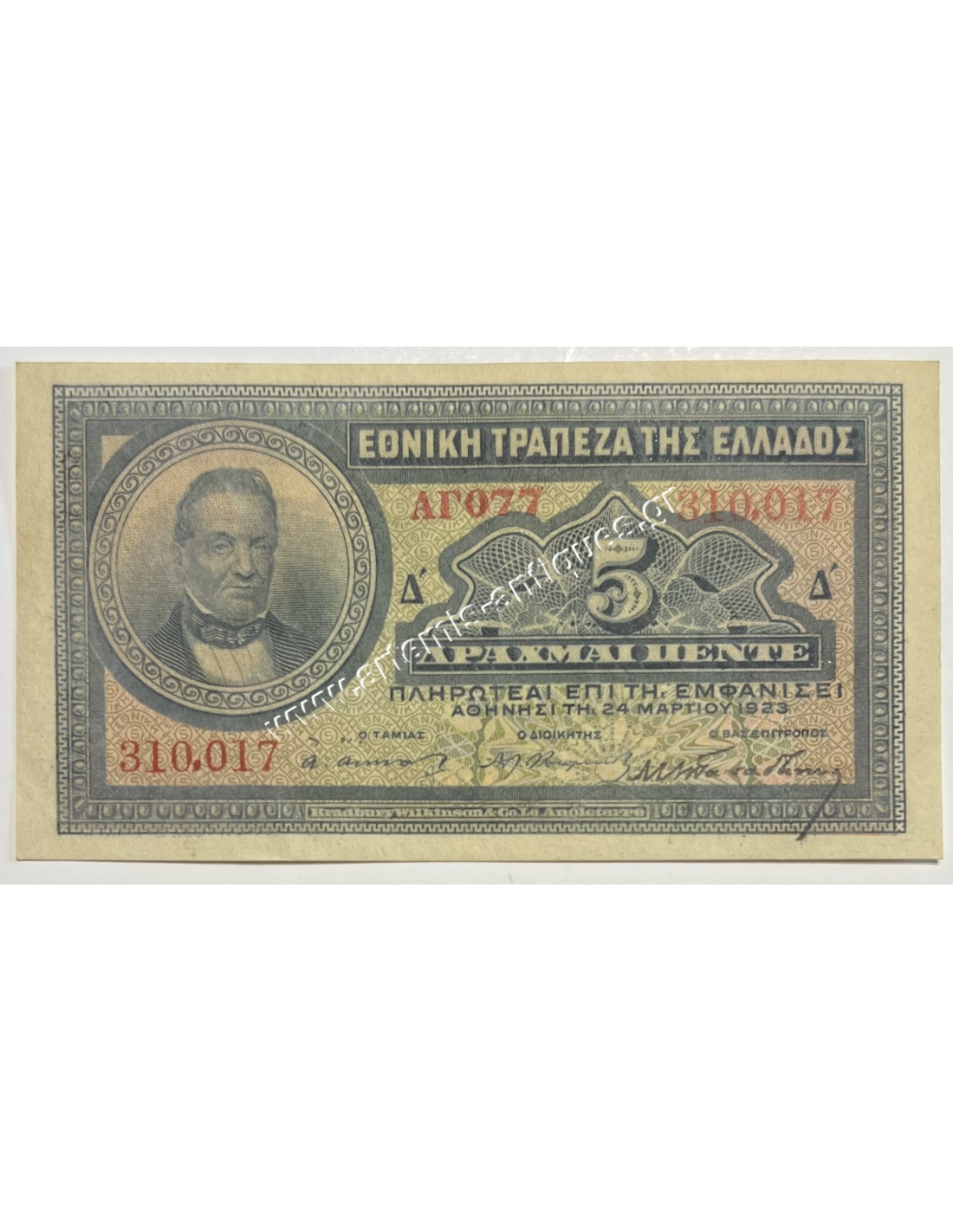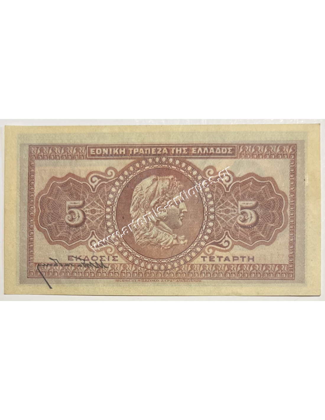 Sold National Bank 10 Drachmas 1926 UNC July, Printed Signature E18 €0.00 Printed commissioner signature Extremely rare in this condition NATIONAL BANK OF GREECE View